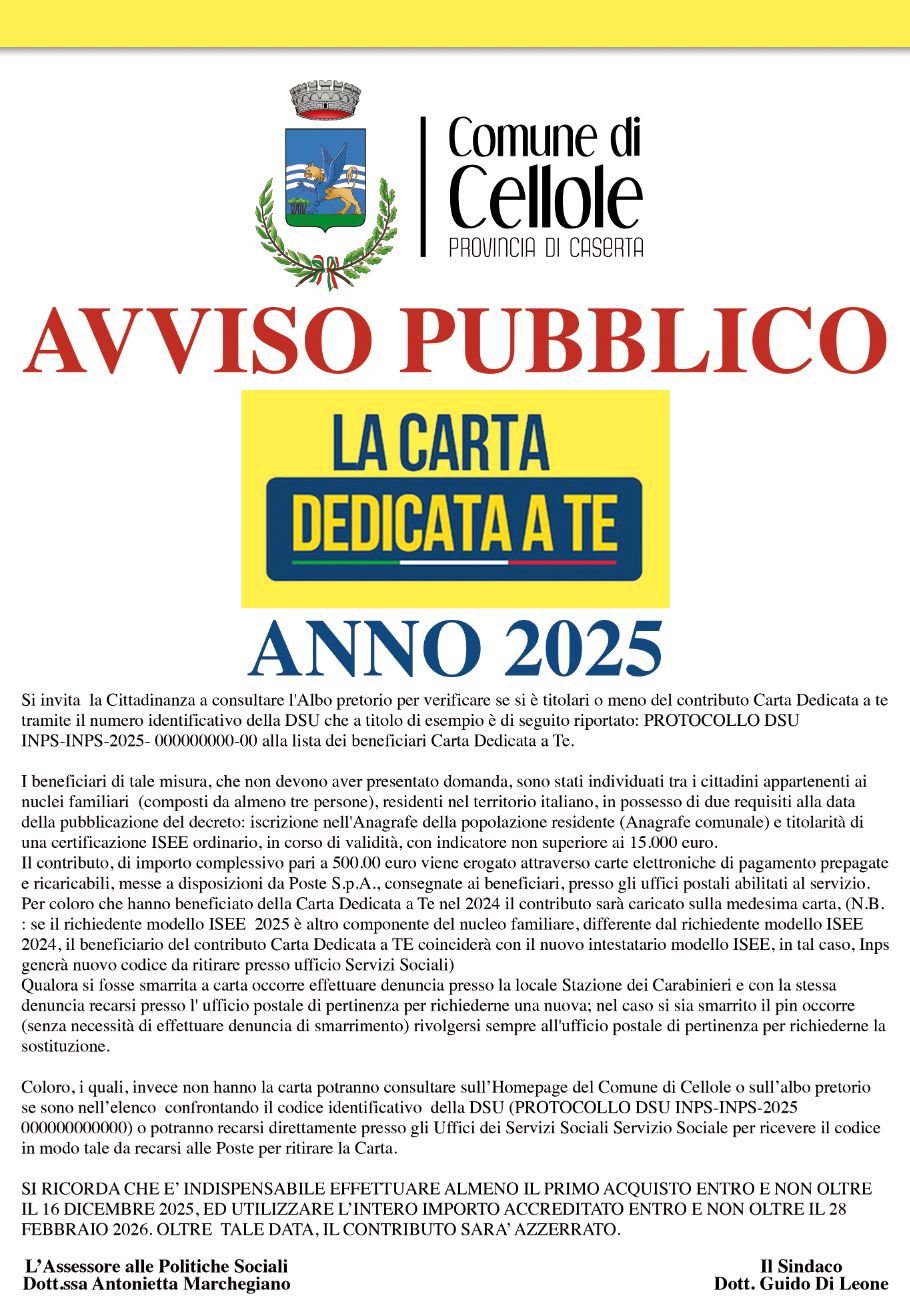È disponibile la graduatoria definitiva dei beneficiari - selezionati dall’INPS sulla base di specifici requisiti di reddito - della “Carta Dedicata a Te 2025”, social card elettronica prepagata, ricaricabile e nominativa, destinata all’acquisto dei beni alimentari di prima necessità.